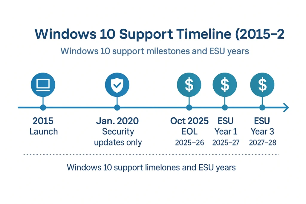 - Windows 10 End of Support Guidance: Microsoft’s advisory on what end of support means and options (upgrade, new PC, or ESU). [support.mi…rosoft.com],